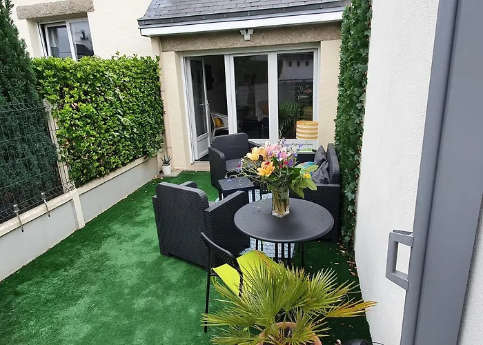 Obiekt noclegowy oferuje wyposażony aneks kuchenny oraz jadalnię i jadalnię na świeżym powietrzu, gdzie można delektować się posiłkami. Międzynarodowe lotnisko Saint-Nazaire Montoir oddalone jest od 2-pokojowego apartamentu o 30 km, a dworzec Beslon - 300 metrów stąd. W apartamencie można zrelaksować się na tarasie i podziwiać widoki na ogród.